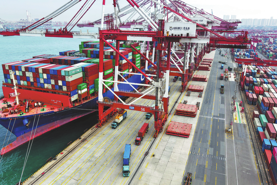 Товарен кораб видян да се зарежда в пристанище Кингдао, провинция Шандонг. YU FANGPING/ЗА КИТАЙ ДАЙЛИ