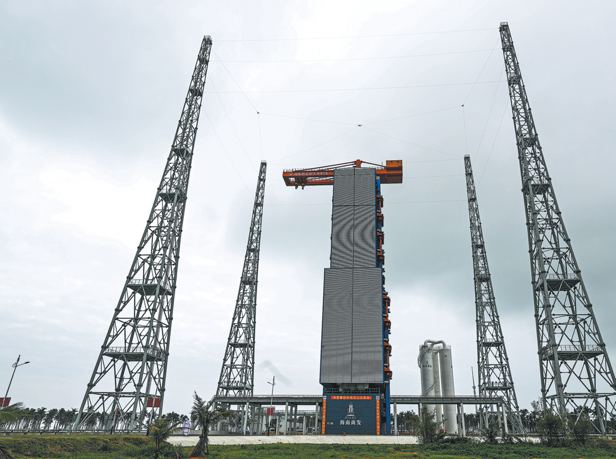 Широкоъгълен изглед показва стартова станция № 1 в Международния търговски аерокосмически център за изстрелване на Хайнан, крайбрежно космодрум във Венчанг, провинция Хайнан, на 11 март. PU XIAOXU/XINHUA